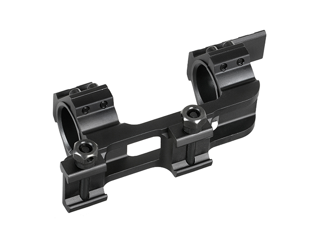 Montage für das Zielfernrohr mit 25 mm Rohr. Nach dem Zerlegen der inneren Ringe ist es möglich, ein Zielfernrohr mit einem Rohrdurchmesser von 30 mm zu montieren.
