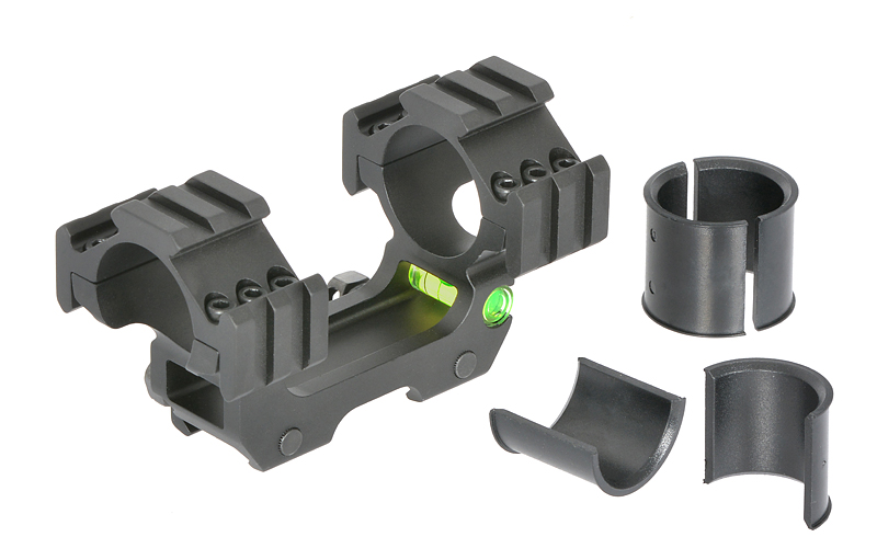 Montage für das Zielfernrohr mit 25 mm Rohr. Nach dem Zerlegen der inneren Ringe ist es möglich, ein Zielfernrohr mit einem Rohrdurchmesser von 30 mm zu montieren.